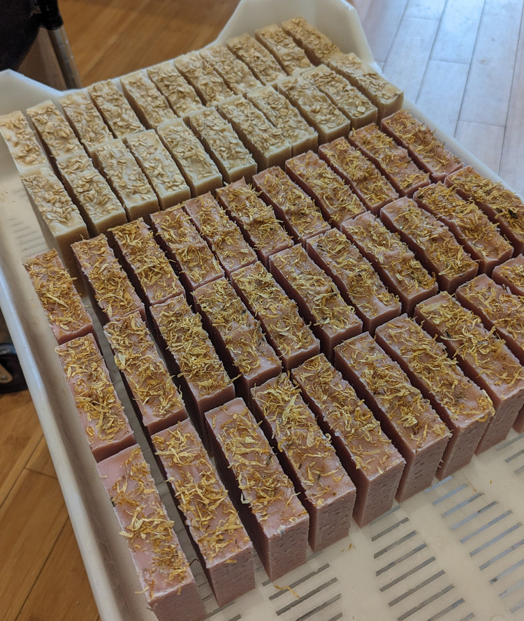 All of our soaps are organic and handcrafted in very small batches in our studio/shop using all plant-based oils.
