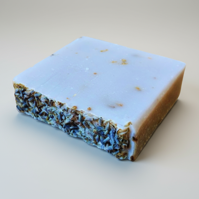 This soap has a calm, tranquil lavender scent with added bits of dried lavender.